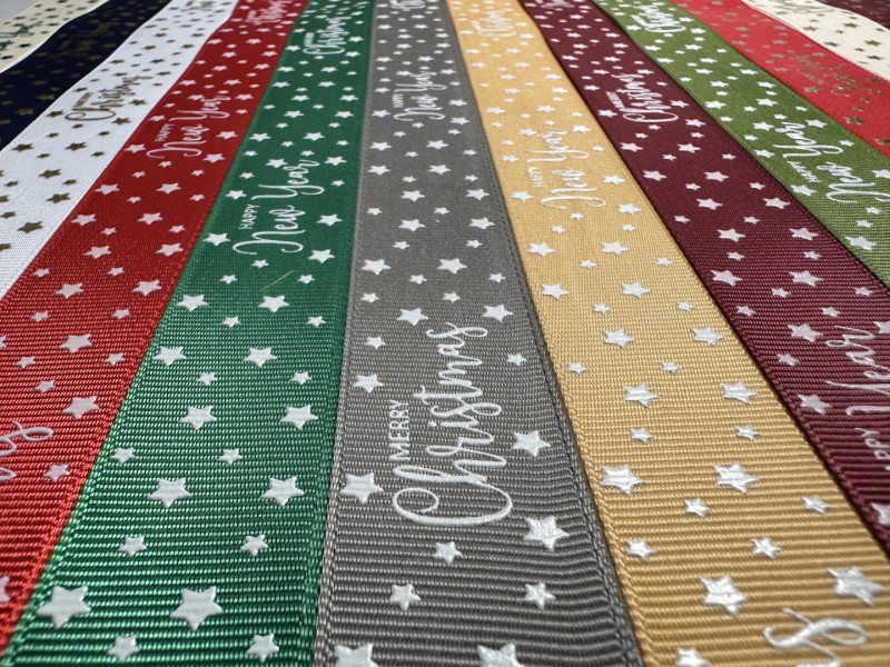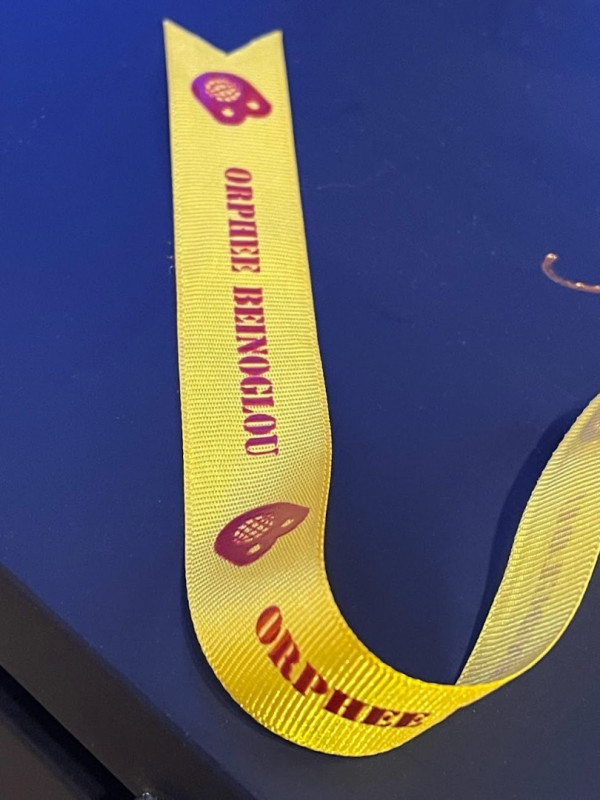Μπορούμε να κατασκευάσουμε για εσάς κορδέλα με τυπωμένο ανάγλυφα το λογότυπό σας, στο χρώμα κορδέλας που θα επιλέξετε από το δειγματολόγιό μας, και με εκτύπωση σε όποια απόχρωση επιθυμείτε – ακόμη και σε χρυσό, μπρονζέ ή ασημί.
